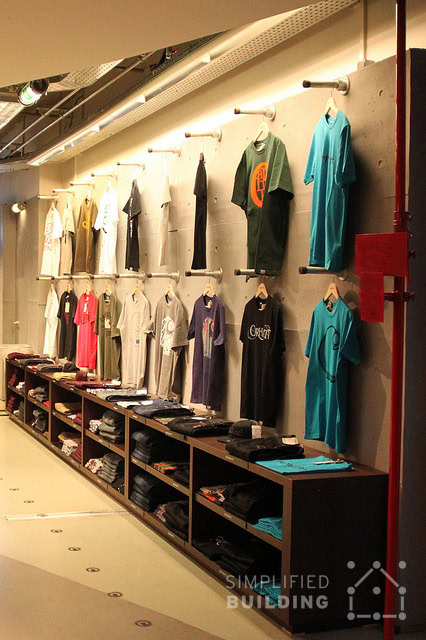 When wall space isn’t available, ceiling-mounted racks step in as a clever alternative. Suspended from above using fittings like flanges and elbows, they create hanging storage without touching the walls or floor. This makes them especially useful in small studios, retail windows, or areas where wall fixtures aren’t possible. The design is simple but highly functional, turning unused overhead space into practical storage solution.