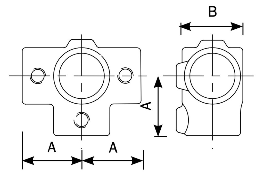 The Side Outlet Tee fitting provides a three way midrail joint for handrail and other structures. It is recommended that the handrail post is continuous through the fitting.