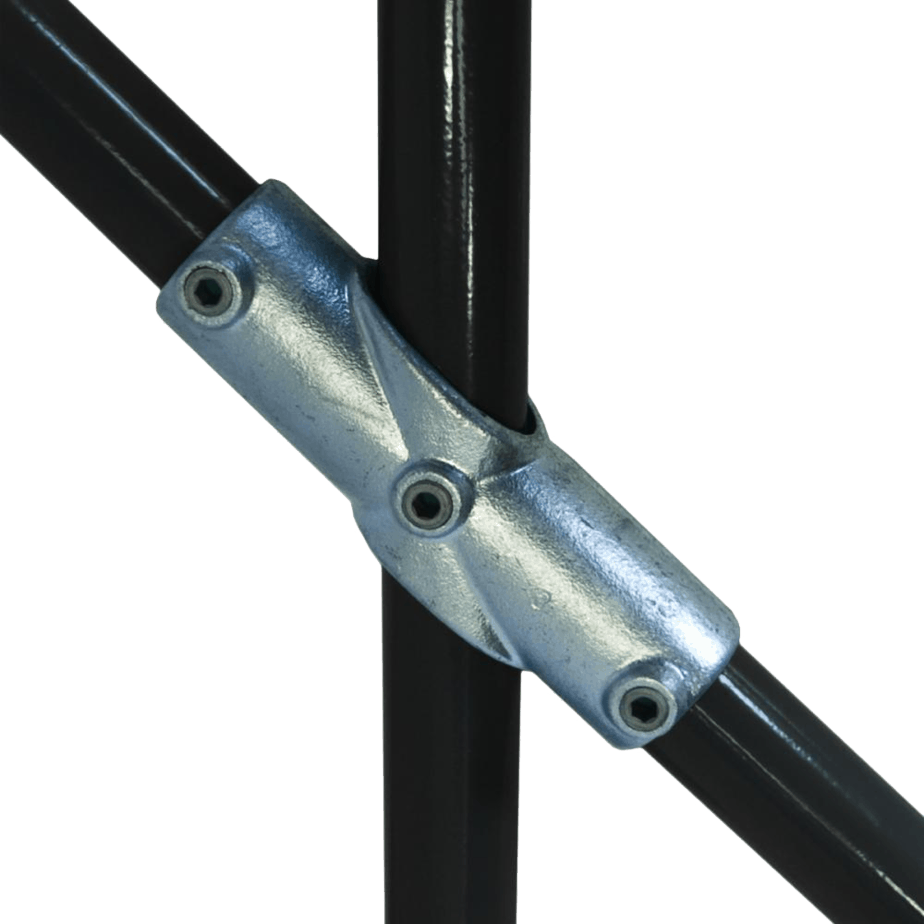 The Adjustable 2 Socket Cross fitting will accommodate any rake angle from 30° to 45°. This fitting is not recommended as the top fitting on a guardrail or balustrade system, use the C29 Adjustable Short Tee.
