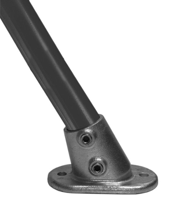 Similar to a type C53, it is used to set the upright at an angle between 11º– 30º. This fitting should only be subjected to light loads which cannot be positioned at 90º to the applied load. For greater loads or other tube sizes a type C12 flange should be used with the upright bent to the required angle Ø indicates the diameter of the fixing hole.